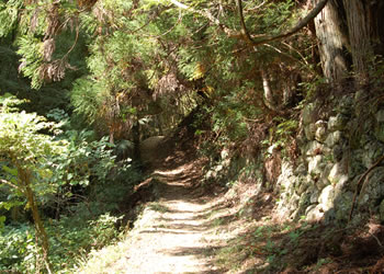 現在山中に残る脱藩の道、九十九曲峠へ向かう。